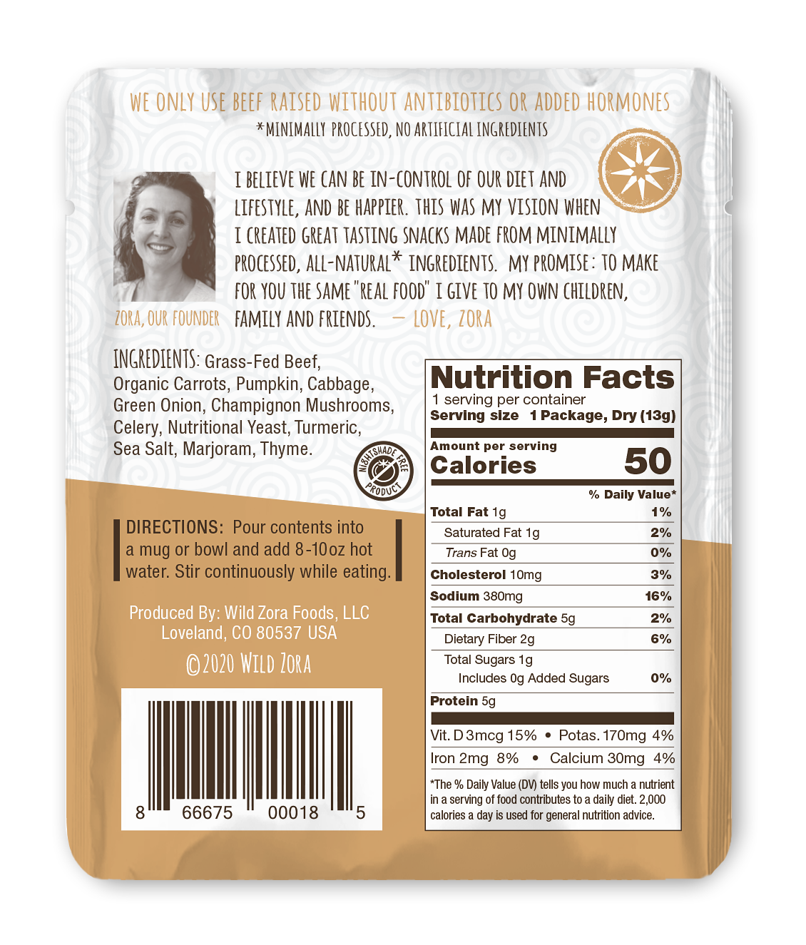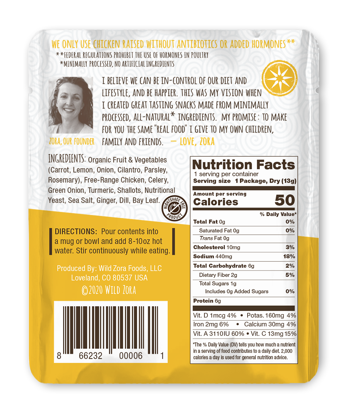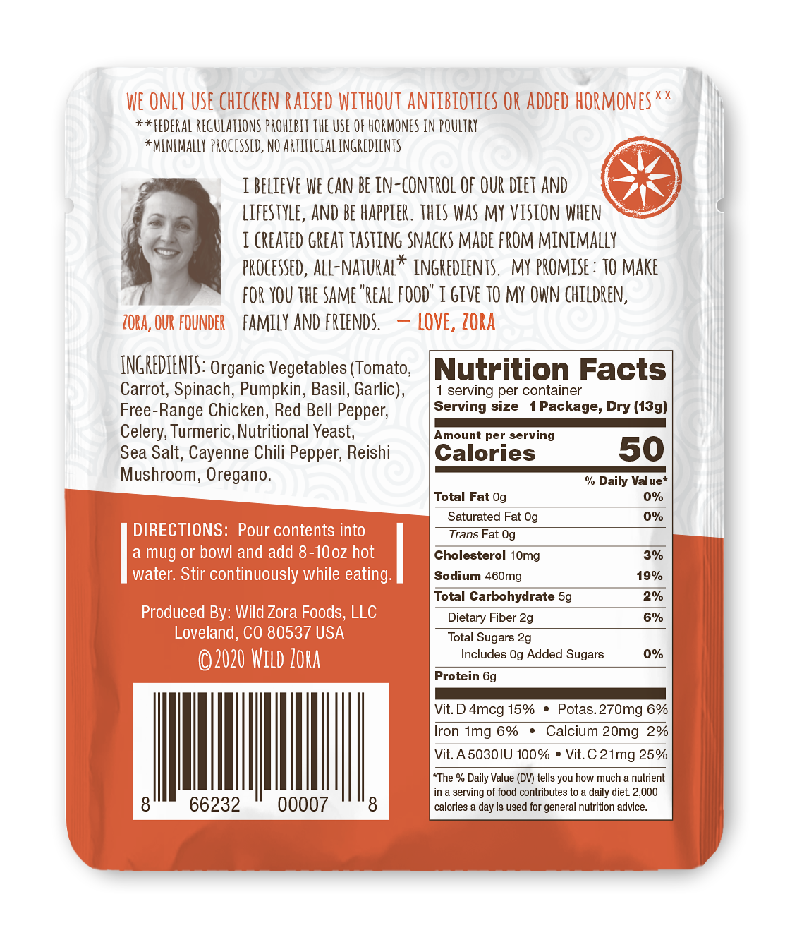 So many convenience foods and “instant” meals, especially soups, have ingredient lists filled with preservatives and artificial flavorings you’ve never even heard of. Half of the time you can’t even decipher exactly what you’re putting in your body without being a food expert or scientist. At Wild Zora, we only put food in our food. The ingredients you’ll find on our soup lists are always all-natural and intentionally chosen.